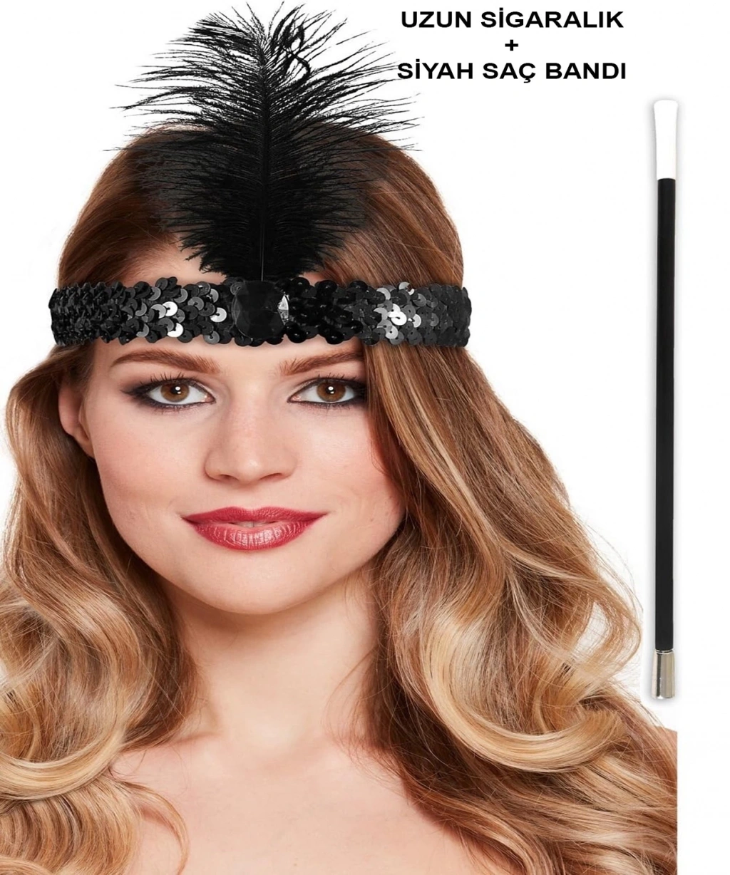 192039ler Gatsby Aksesuar Seti – Siyah Charleston Saç Bandı Lık