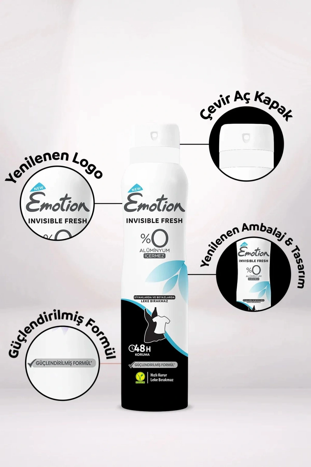 Emotion Invisible Fresh Alüminyum içermeyen ve vücudun terleme dengesini etkilemeden 48 saat koruma