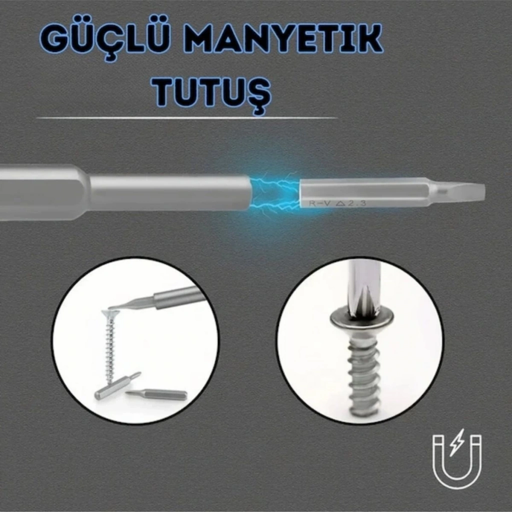 25 Parça 24 Farklı Uçlu Mıknatıslı Tornavida Seti | 25 in 1 Pratik Tamir Çözümü!
