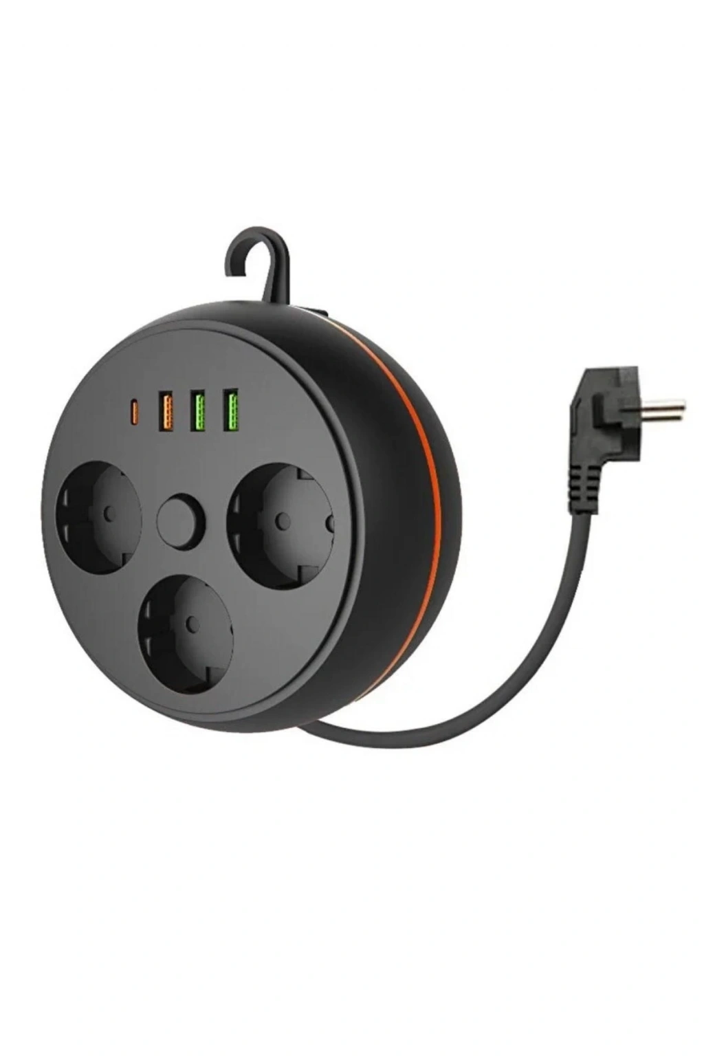 3 Adet Soket,3 Adet USB ve 1 Adet Type-C Girişli Termal Akım Korumalı Makaralı Priz