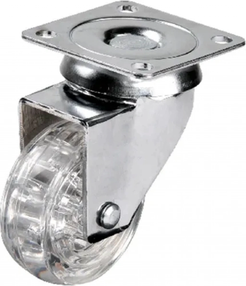 HTS 301 - 50x20 mm Şeffaf Makaralı Tablalı Teker, genellikle küçük mobilyalar, oyuncaklar, el arabaları ve benzeri hafif yük taşıma uygulamalarında kullanılan, hareketli ve sabit durumlarda güvenli bir tutuş sağlayan bir tekerlek türüdür.