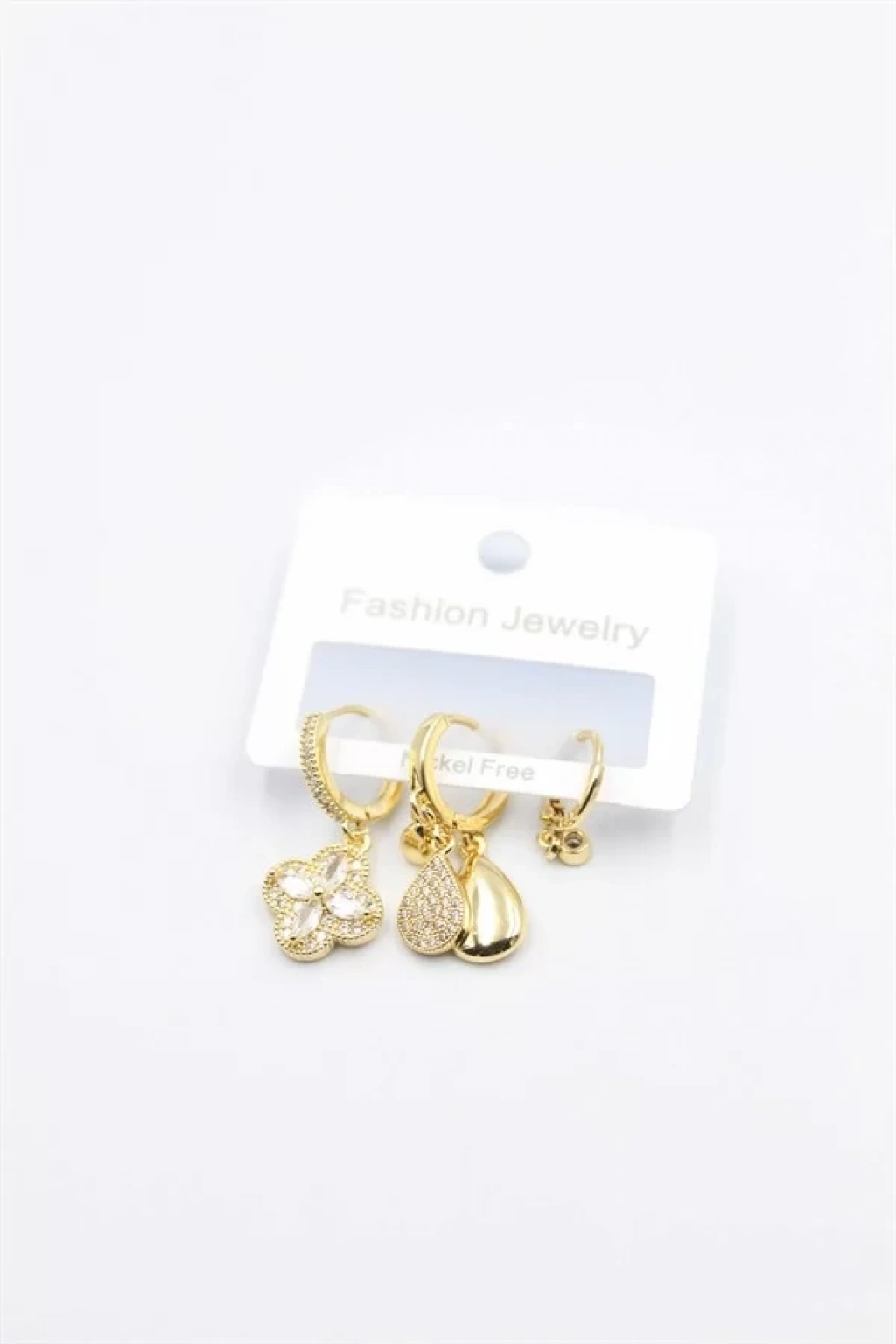 Mey İthalat® Pirinç Gold Renk Üçlü Görünüm Kadın Küpe