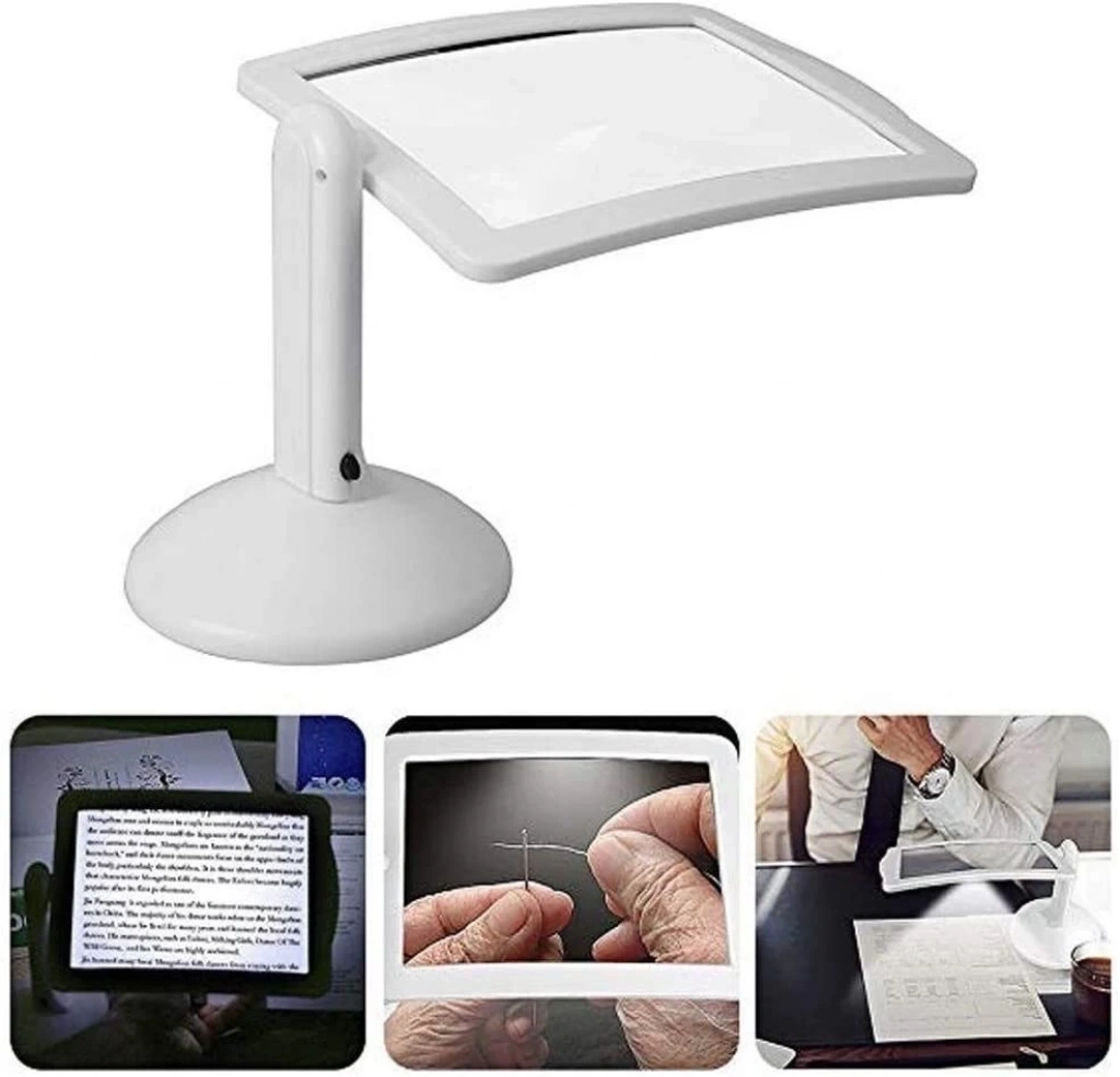 Bu güzel bir ev tipi büyüteçtir, yaşlıların kolayca iğneye iplik geçirmelerini, gazeteleri okumalarını vb. sağlar. LED ışıklarıyla, geceleri de görülebilir. Özellikler: Küçük boyutlu ve hafif, taşıması kolay. Evde veya seyahatte mükemmel kullanım. Geceleri veya düşük ışık seviyesindeki yerlerde okumak için 2 beyaz LED ışığı bulunmaktadır. Serbest duran büyüteç ekranı, böylece elleriniz başka bir şey yapmakta özgür. Yulak tabanın altındaki dört silikon ped, ünitenin tezgah üzerinde hareketsiz durmasını sağlar. Büyüteç ekranı 360 derece dönebilir, büyüteci size uygun açıya konumlandırmak kolaydır. Metin mesajlarını kontrol etmek, zanaat ve hobiler üzerinde çalışmak, kitap okumak, iğneye iplik geçirmek vb. için geçerlidir. Özellikler: Ana renk: beyaz Ana malzeme: ABS+PP Büyütme: 3X Stand yüksekliği: yaklaşık 150 mm Battery: 4 * AAA Ba ttery (dahil değildir) Paket boyutu: 215 * 147 * 135mm / 8.5 * 5.8 * 5.3in Paket ağırlığı: 298g / 10.5 ons