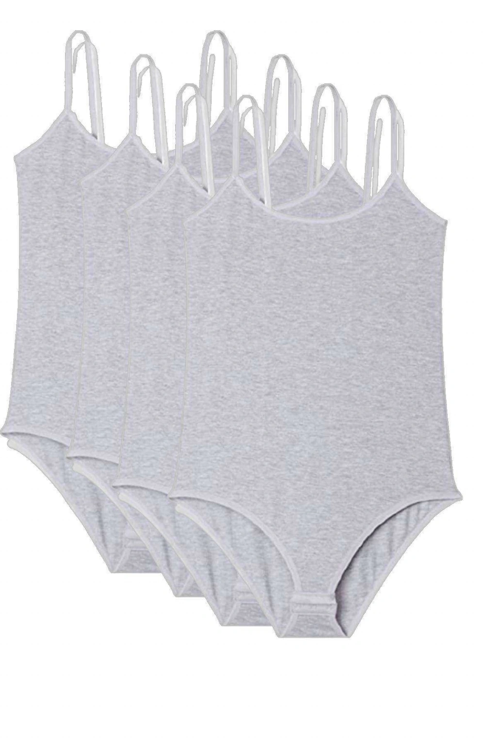 4 Adet İp Askılı Kadın Çıtçıtlı Body Gri