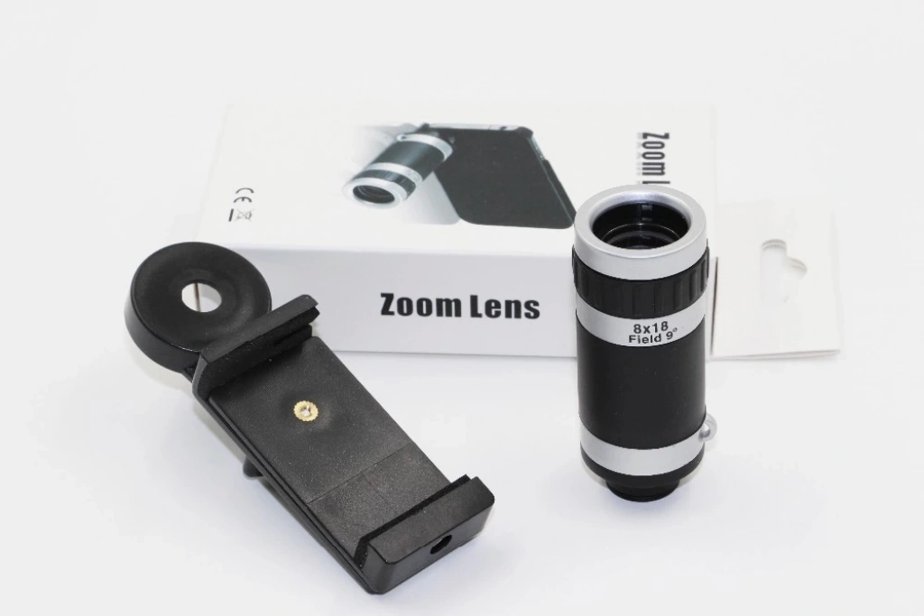 8x Zoom Lens, evrensel ve ayarlanabilir tutucu ile farklı telefonlarla uyumluluğu garanti eder.