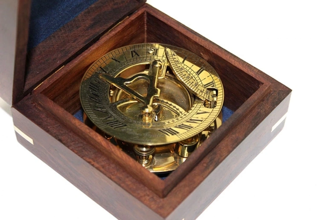 Ahşap Kutulu Pirinç Güneş Saati Ve Pusula Modeli 2213