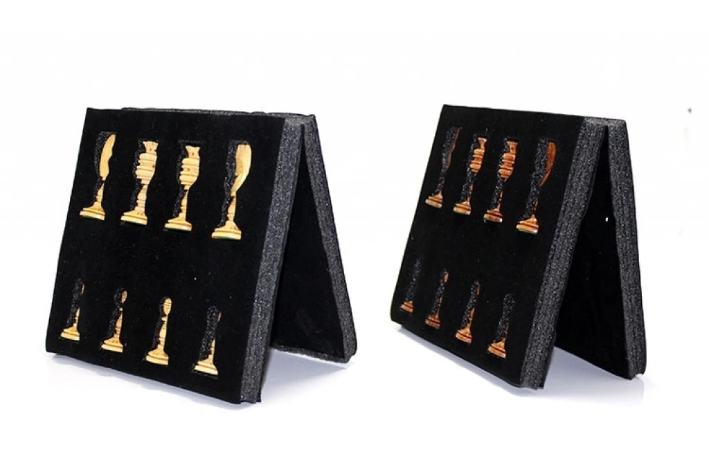 Özel Vernikli Mıknatıs Taşlı Ahşap Katlanabilir Kutulu Satranç Oyunu 12.5 Cm G220
