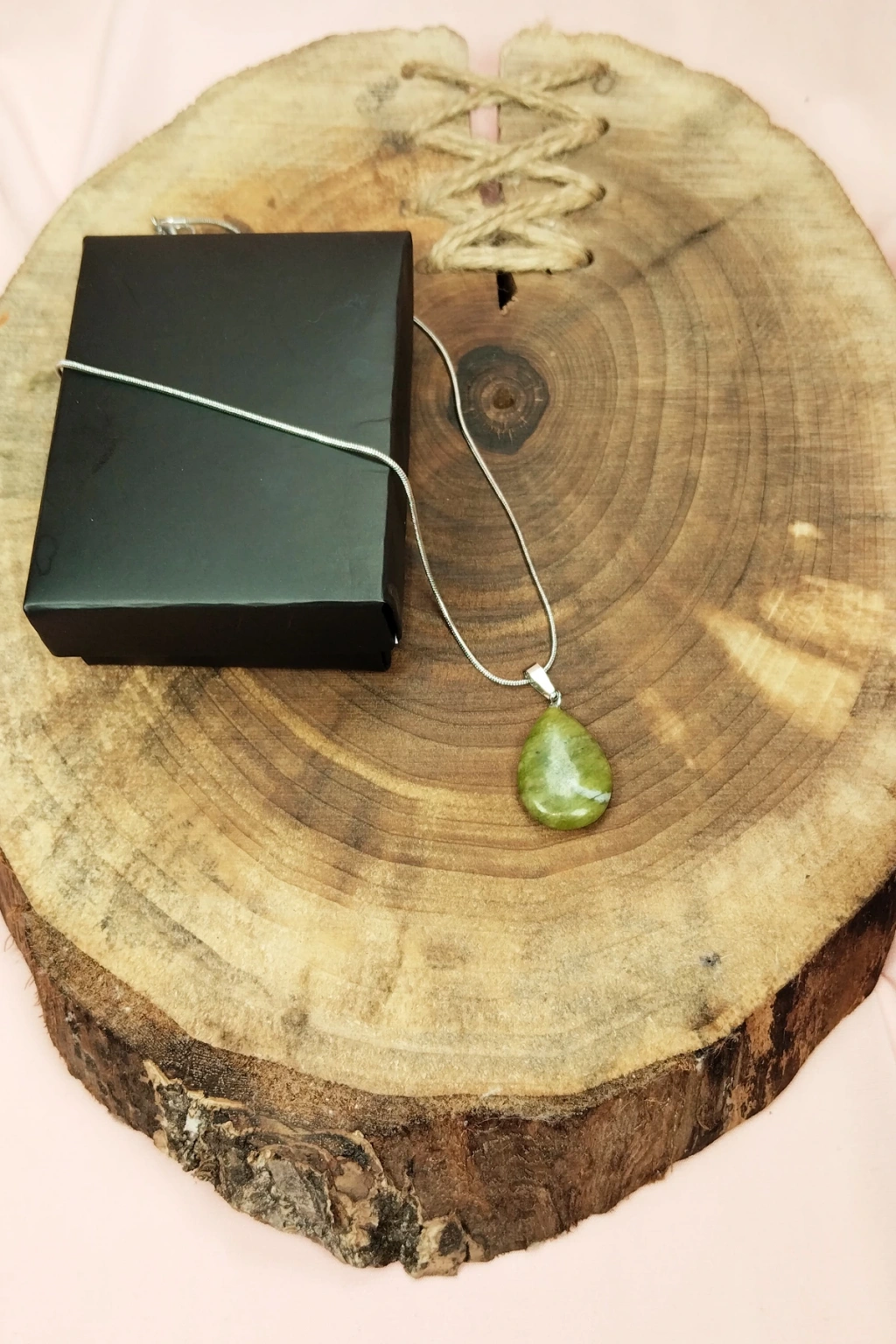 Aventurin Doğal Taşı Zincirli El Yapımı Tasarımlı Kolye Uç: 3,5 cm Zincir: 20 cm Kutulu