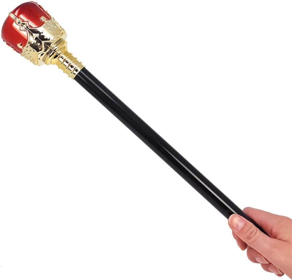 Altın Renk 60 Cm Kral Tacı Kraliyet Tacı Ve Kırmızı Topuzlu Kral Asası Seti