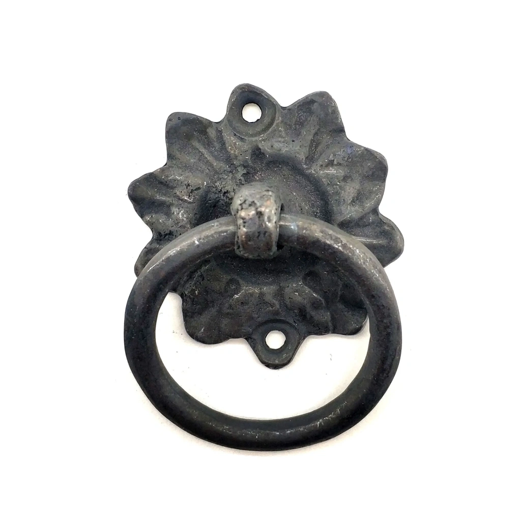 Antika Tarz Dekoratif Pirinç Çiçek Mobilya Kulbu, Kapı Kilit Halkası - 50mm, Oksit