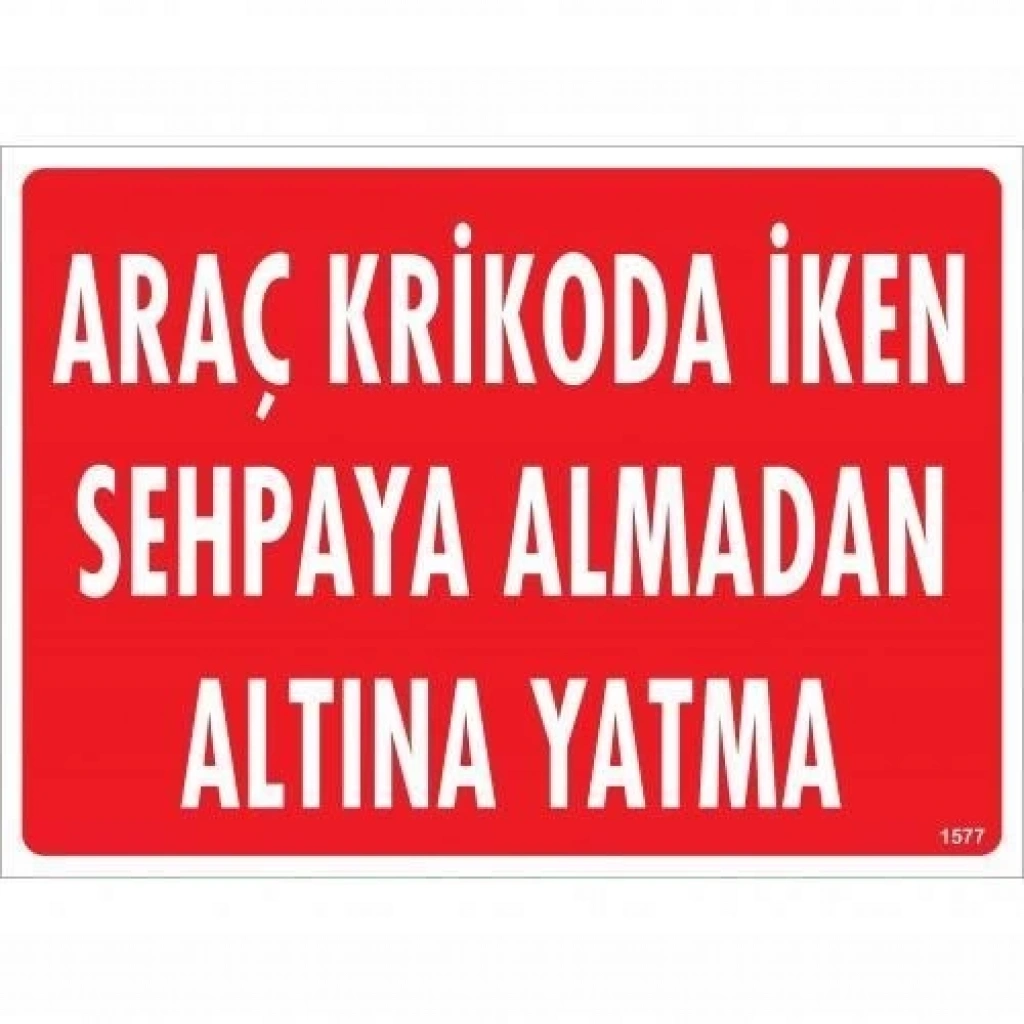 Araç Krikoda İken Sehpaya Almadan Altına Yatma Uyarı Levhası 25x35 KOD:1577
