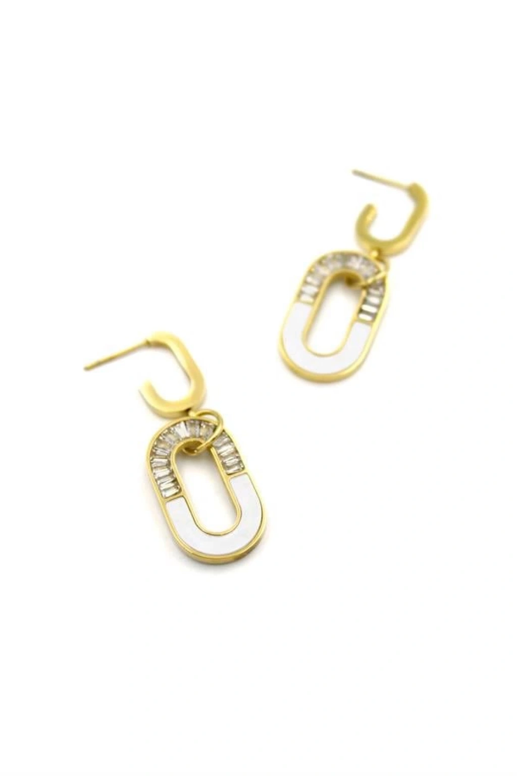 BFS Sallantılı Beyaz Mineli Gold Renk Kadın Küpe
