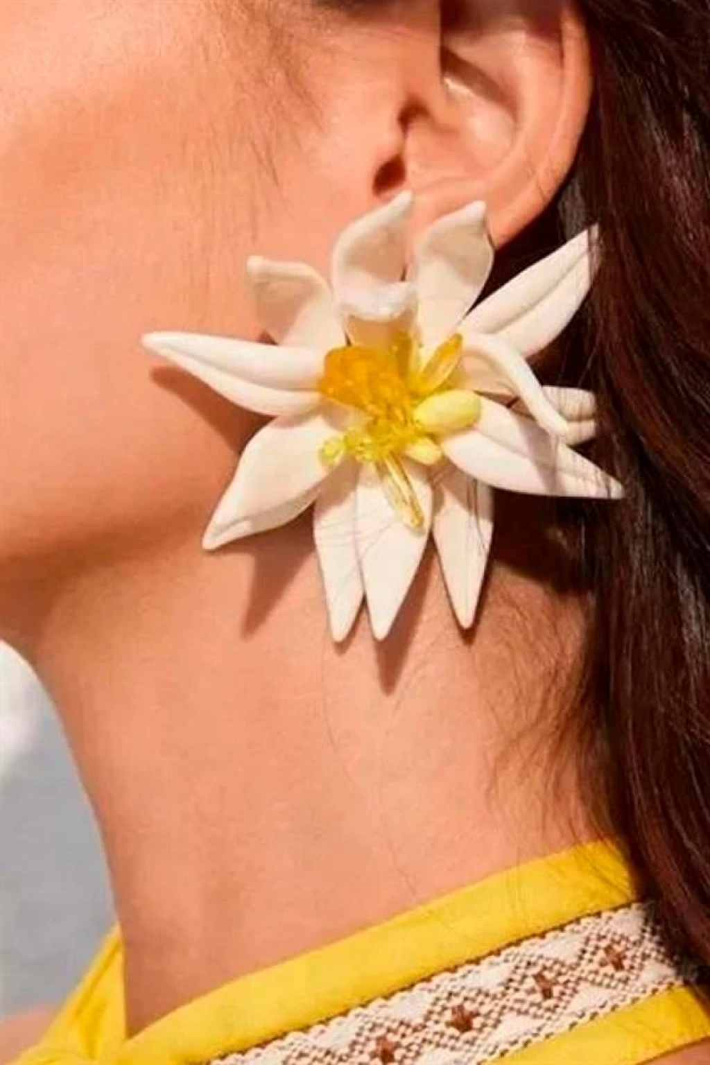 BFS 316L Çelik Gümüş Renk Beyaz Yonca Model Kadın Küpe