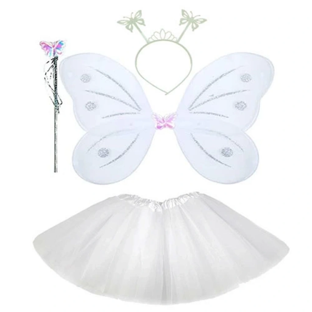 Beyaz Kelebek Kostümü - Beyaz Kelebek Kostüm Aksesuar Seti 4 Parça