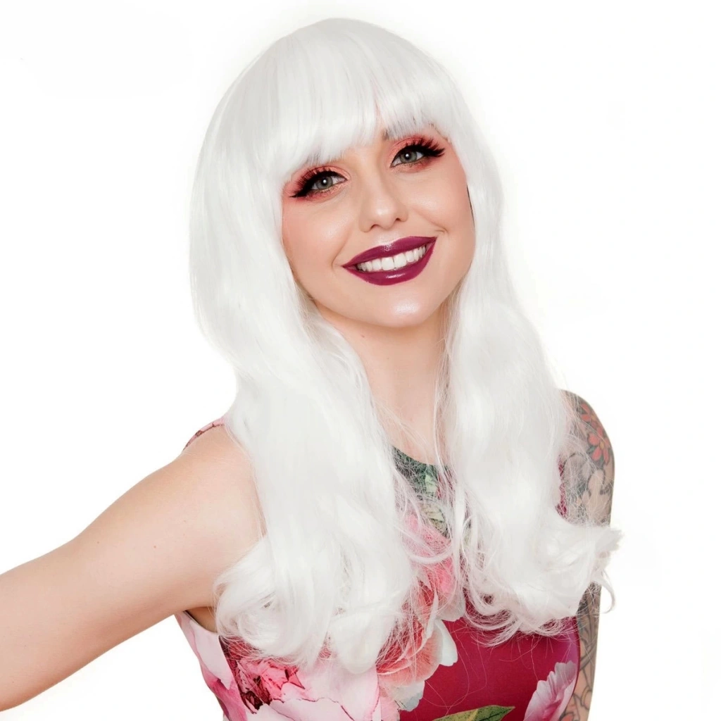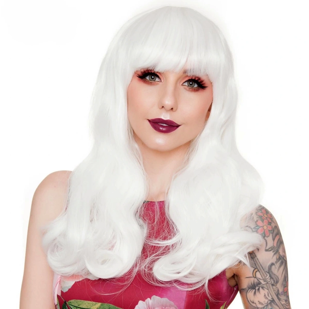 Beyaz Renk Dalgalı Uzun Parti Peruğu
