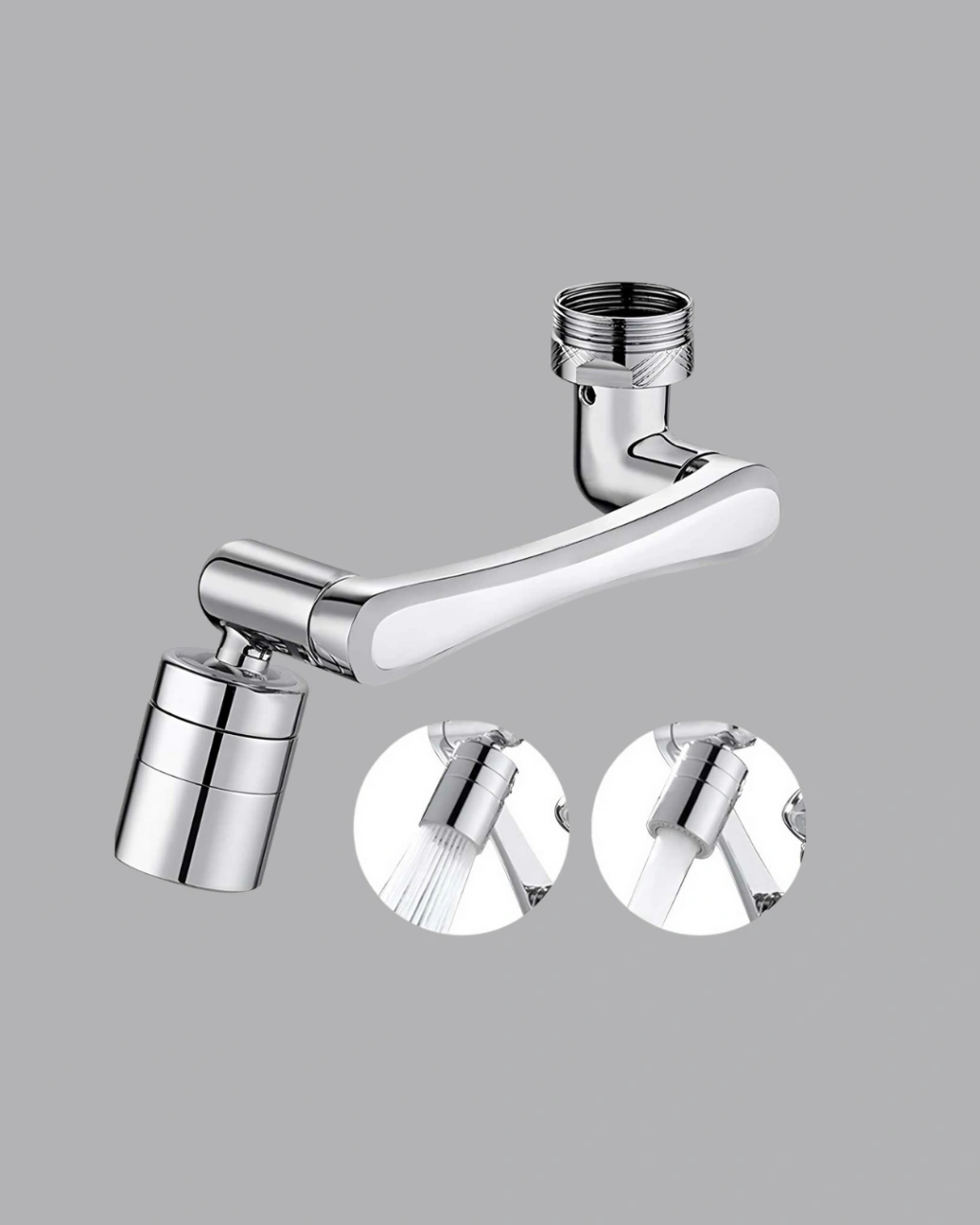 Günlük kullanımda musluk başlıklarının yetersiz kaldığı noktalarda devreye giren 1080° dönebilen robotik kol havalandırıcı, lavabo kullanımına tamamen yeni bir boyut kazandırmak için tasarlanmış fonksiyonel bir üründür. Üç segmentli özel robotik kol yapısı sayesinde suyu istediğiniz yöne yönlendirebilir, musluk başlığını yukarı-aşağı ve sağa-sola kolayca hareket ettirebilirsiniz. Toplamda 1080 derece dönebilen esnek eklem sistemi, geleneksel musluklara göre çok daha geniş bir kullanım alanı sağlar.Bu musluk aparatı sayesinde lavabonun her köşesine ulaşmak mümkün olur. Yüz yıkarken, diş fırçalarken, mutfakta sebze meyve yıkarken, bebek eşyalarını temizlerken veya tıraş olurken suyun istediğiniz şekilde yönlenmesi büyük kolaylık sağlar. Özellikle hareket kabiliyeti kısıtlı bireyler, çocuklar ve yaşlılar için musluk kullanımını pratik hale getirir. Suyun yönünü tek hareketle değiştirebilmeniz, günlük hijyen süreçlerini çok daha hızlı ve konforlu hale getirir.Havalandırıcı uç yapısı, suyun basıncını dengeler ve sıçramayı azaltır. Böylece hem su tasarrufu sağlanır hem de lavabonun çevresi daha temiz kalır. Ürün, dayanıklı metal ve ABS malzeme karışımından üretilmiştir. Bu sayede kire, paslanmaya ve uzun süreli kullanıma karşı direnç gösterir. Eklem bölgelerinde bulunan sıkı bağlantı mekanizması uzun vadede gevşeme yapmaz, musluk başlığının dengeli şekilde hareket etmesini sağlar.Kurulumu son derece kolaydır. Standart musluk başlıklarıyla uyumlu tasarımı sayesinde ek bir tesisat gerektirmez; sadece musluğa vidalayarak anında kullanmaya başlayabilirsiniz. Mutfak, banyo, lavabo, tuvalet el yıkama alanları gibi pek çok yerde rahatlıkla kullanılabilir.Hem şık hem fonksiyonel bu havalandırıcı, musluğu daha modern, daha kullanışlı ve daha ergonomik bir hale getirir. Günlük yaşamda hız ve kolaylık arayanların mutlaka sahip olması gereken pratik bir çözümdür.