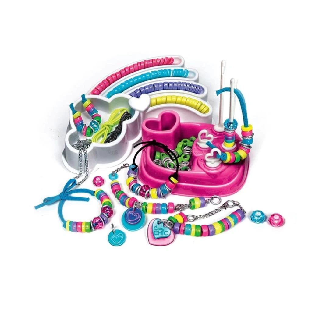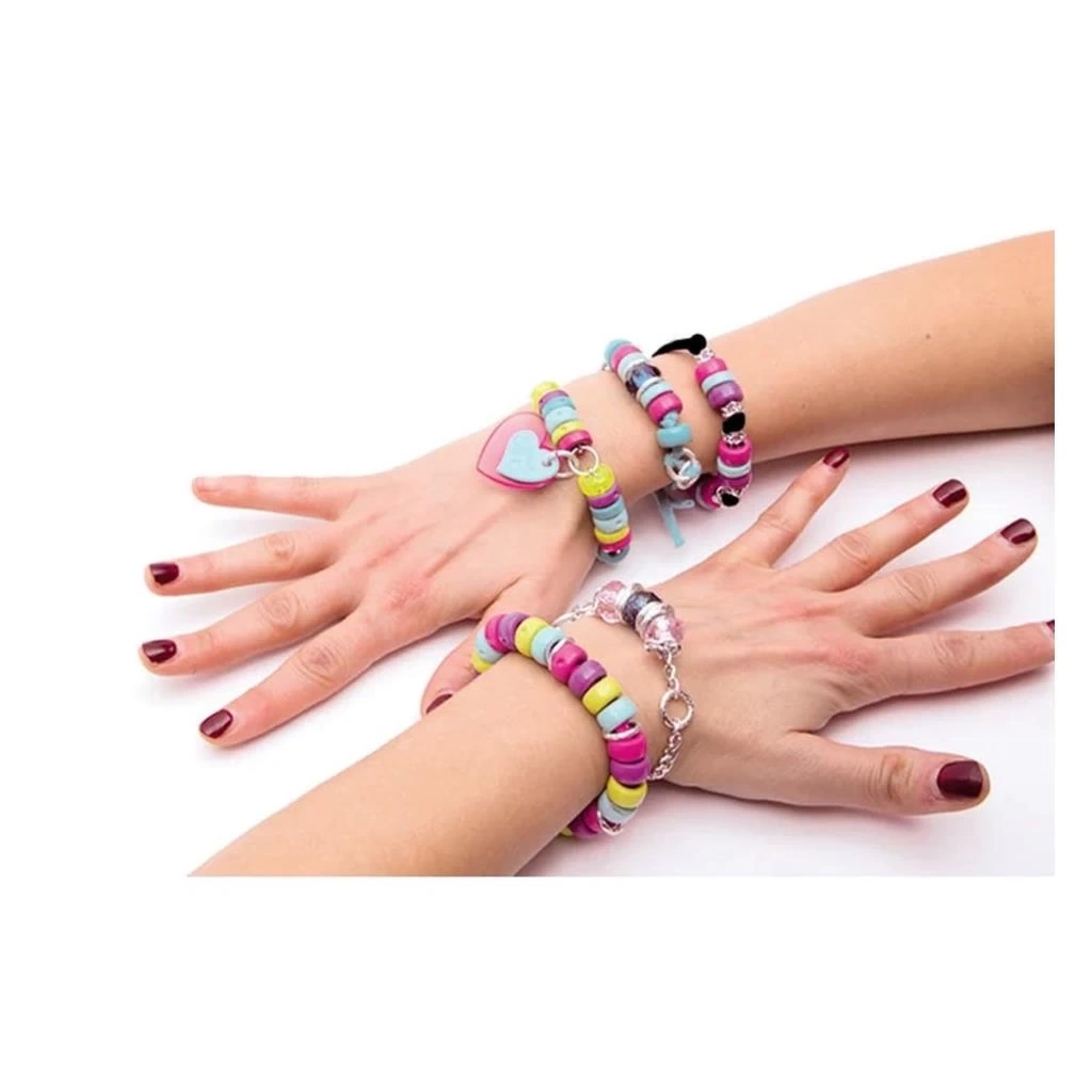 Crazy Chic Arkadaşlık Bileklikleri Takı Seti ile en iyi arkadaşım sensin! Kızlar bu sete bayılacak! Crazy Chic Arkadaşlık Bileklikleri Takı Seti ile kızlar hem yaratıcılıklarını geliştirecek hem de eğlenceli dakikalar geçirecekler. Yıldız şeklindeki kutunun içerisi rengarenk boncuklarla dolu. Onları dilediğin sırayla setle birlikte gelen 4 farklı renkteki ipe geçirebilir ve farklı tasarımlar oluşturup onlarla kendine şık ve eğlenceli bileklikler yapabilirsin. Kalpli ve yıldız şeklindeki aksesuarları ve çıkartmaları kullanarak kendi tasarımlarını daha havalı kılabilirsin. Bu bileklikler arkadaşlık bileklikleri! Sadece kendine değil arkadaşına da bileklik yapabilir ve bileklerinizi rengarenk takılarla doldurabilirsiniz. Hatta istersen ikinize de aynısını yapabilir arkadaş olduğunuzu gösterebilirsin. Arkadaşının en sevdiği renkteki ipleri ve boncukları kullanabilir, onu çok sevdiğin için hazırladığın bilekliğe kalpli boncuk ekleyebilirsin. Her şey senin hayal gücüne kalmış! Yapabileceğin sonsuz sayıda tasarım var. Crazy Chic Arkadaşlık Bileklikleri Takı Seti, hayal gücü ve yaratıcılığına katkı sağlarken çocukların el becerilerinin gelişmesine yardımcı olur. Kutu içerisinde; renkli ipler, plastik boncuklar, yıldız şeklinde aksesuar tutucu, vantuz, plastik süsler ve pimler, çıkartmalar ve resimli kullanım kılavuzu yer almaktadır. Kutu ölçüsü: 18 x 6 x 18 cmÜrün görselinde birden fazla renk ve çeşit olduğunda stokta bulunan ve gönderilecek olan ürün için soru sor kısmından bizimle iletişime geçebilirsiniz