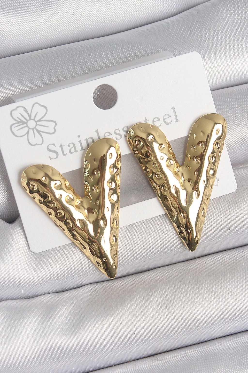 BFS 316 Çelik Gold Renk İşlemeli Kalp Model Kadın Küpe
