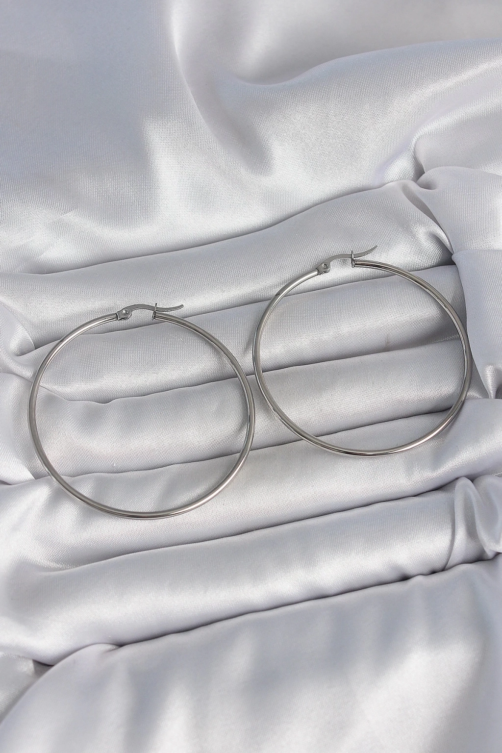 BFS 316 Çelik Gümüş Renk 53 mm Halka Model Kadın Küpe