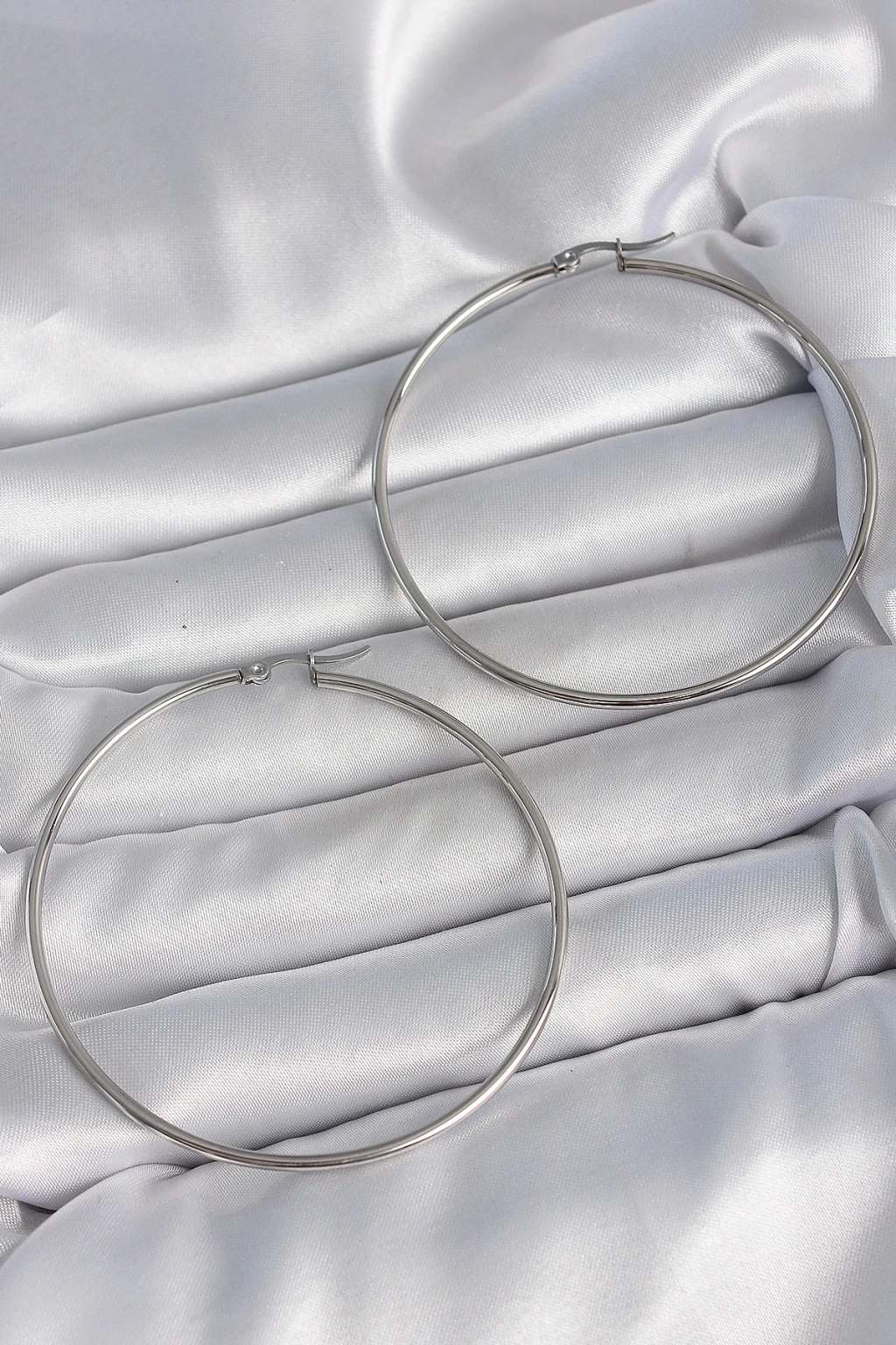BFS 316 Çelik Gümüş Renk 63 mm Halka Model Kadın Küpe