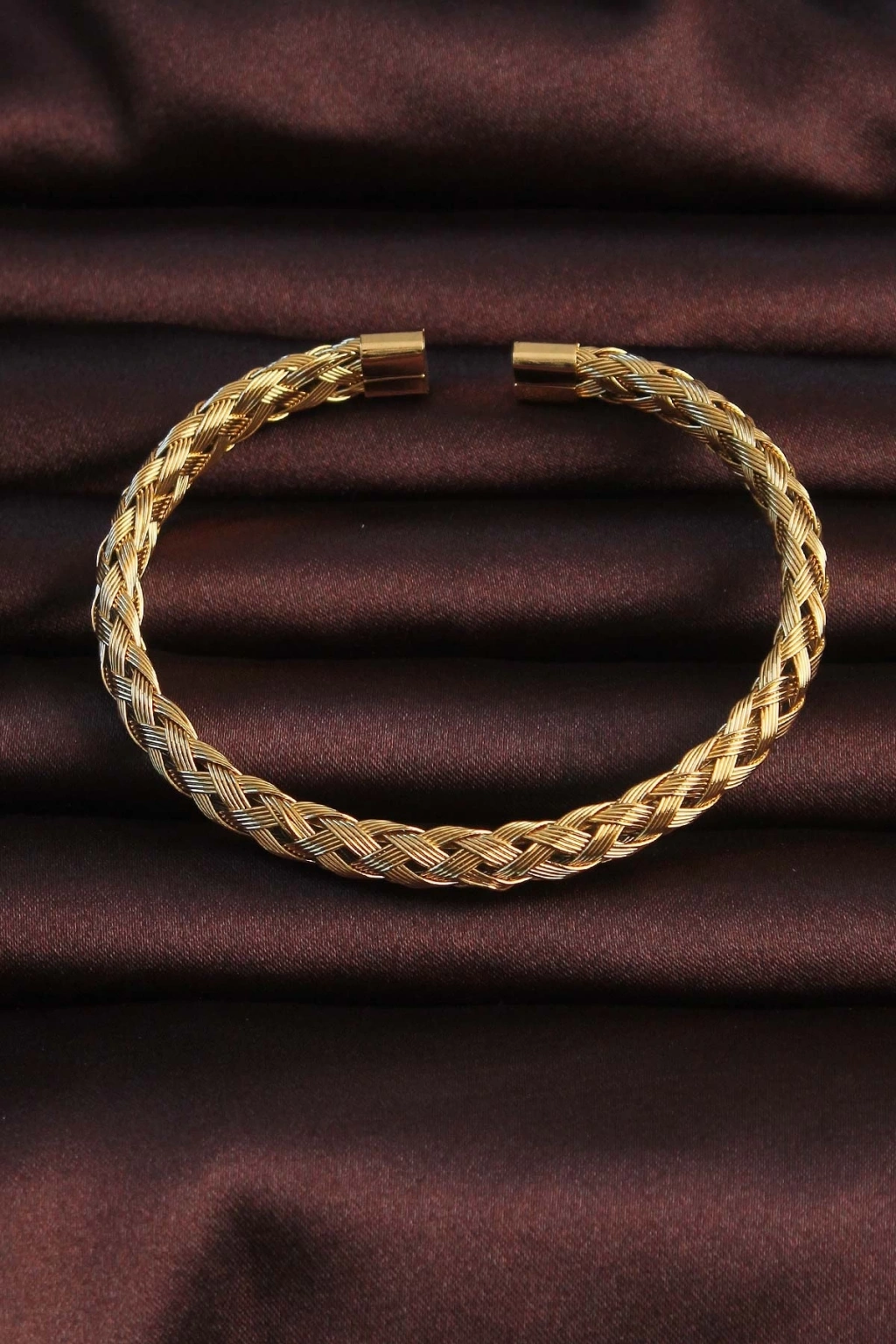 BFS 316L Çelik Altın Renk Kalın Yassı Örgü Model Erkek Bileklik