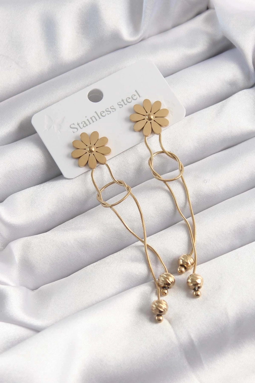 BFS 316L Çelik Altın Renk Sallantılı Düğüm Model Papatya Küpe