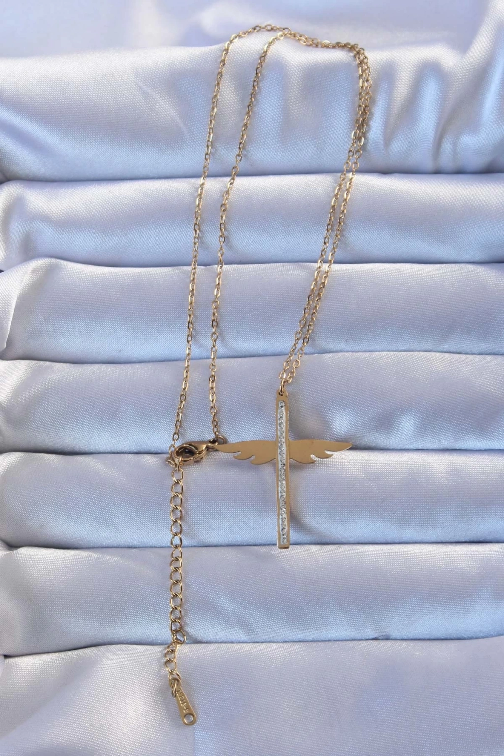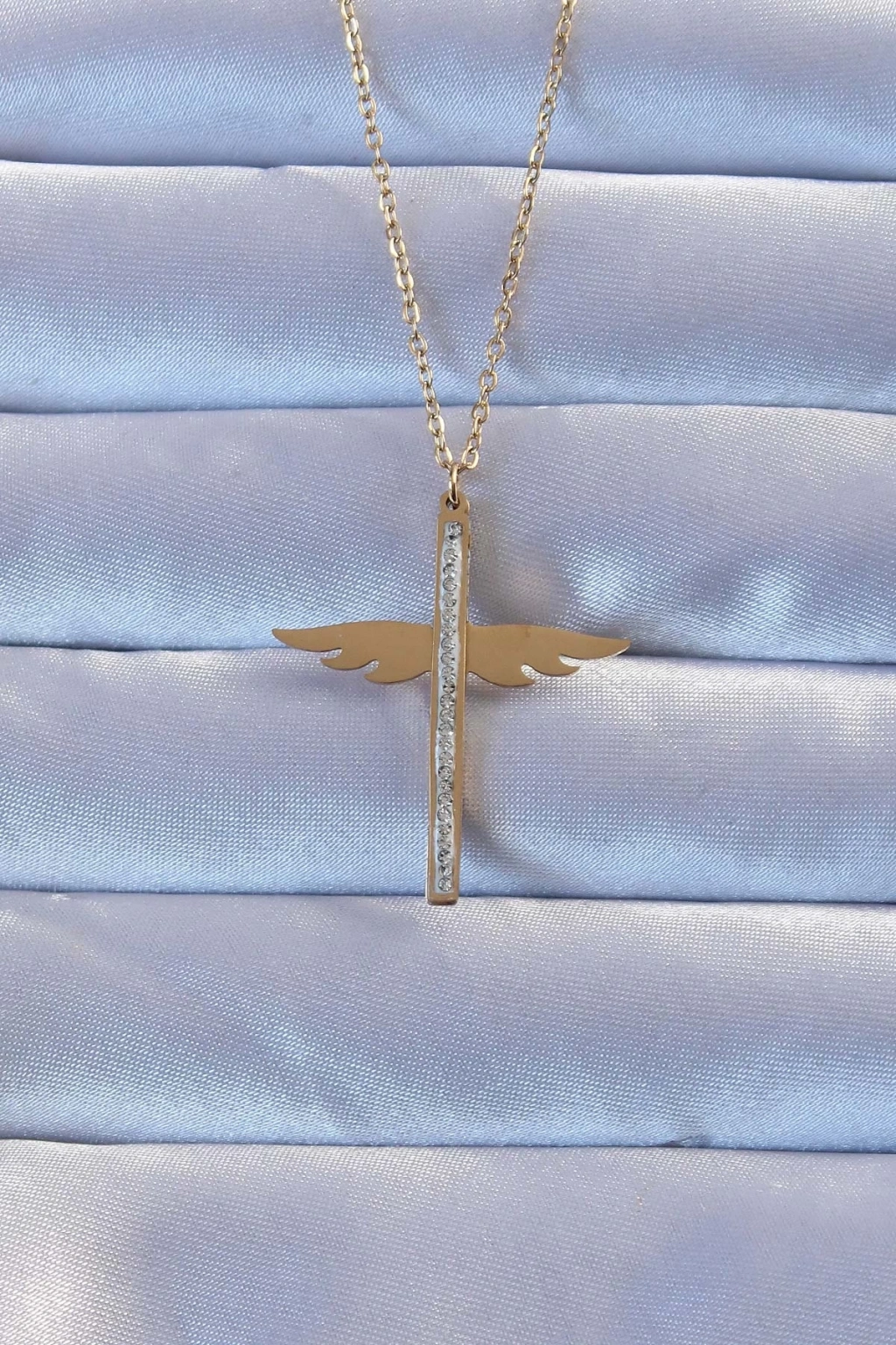 BFS 316L Çelik Altın Renk Zirkon Taşlı Mikail Kolye