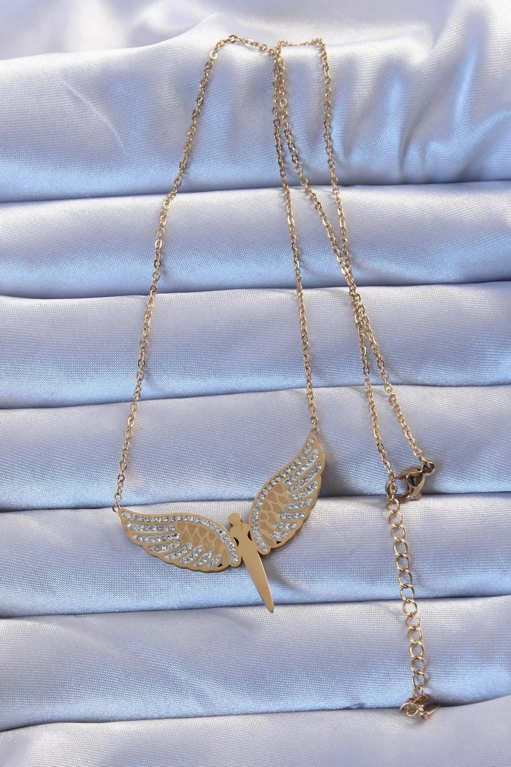 BFS 316L Çelik Zincir Gold Zirkon Taşlı Yılbaşı Tema Kadın Kolye