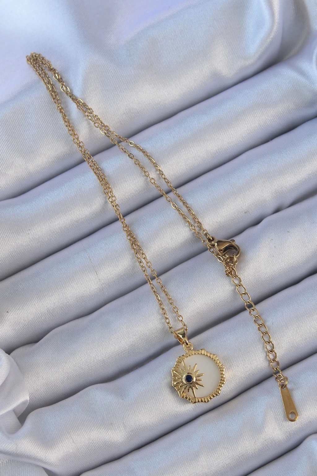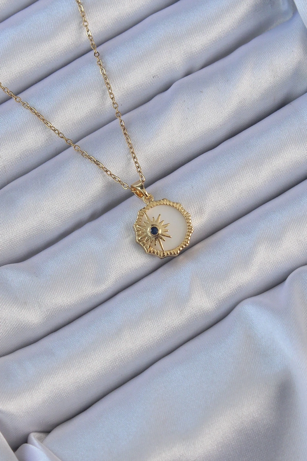 BFS 316L Çelik Altın Renk Zirkon Taşlı Mineli Kutup Yıldızı Kolye