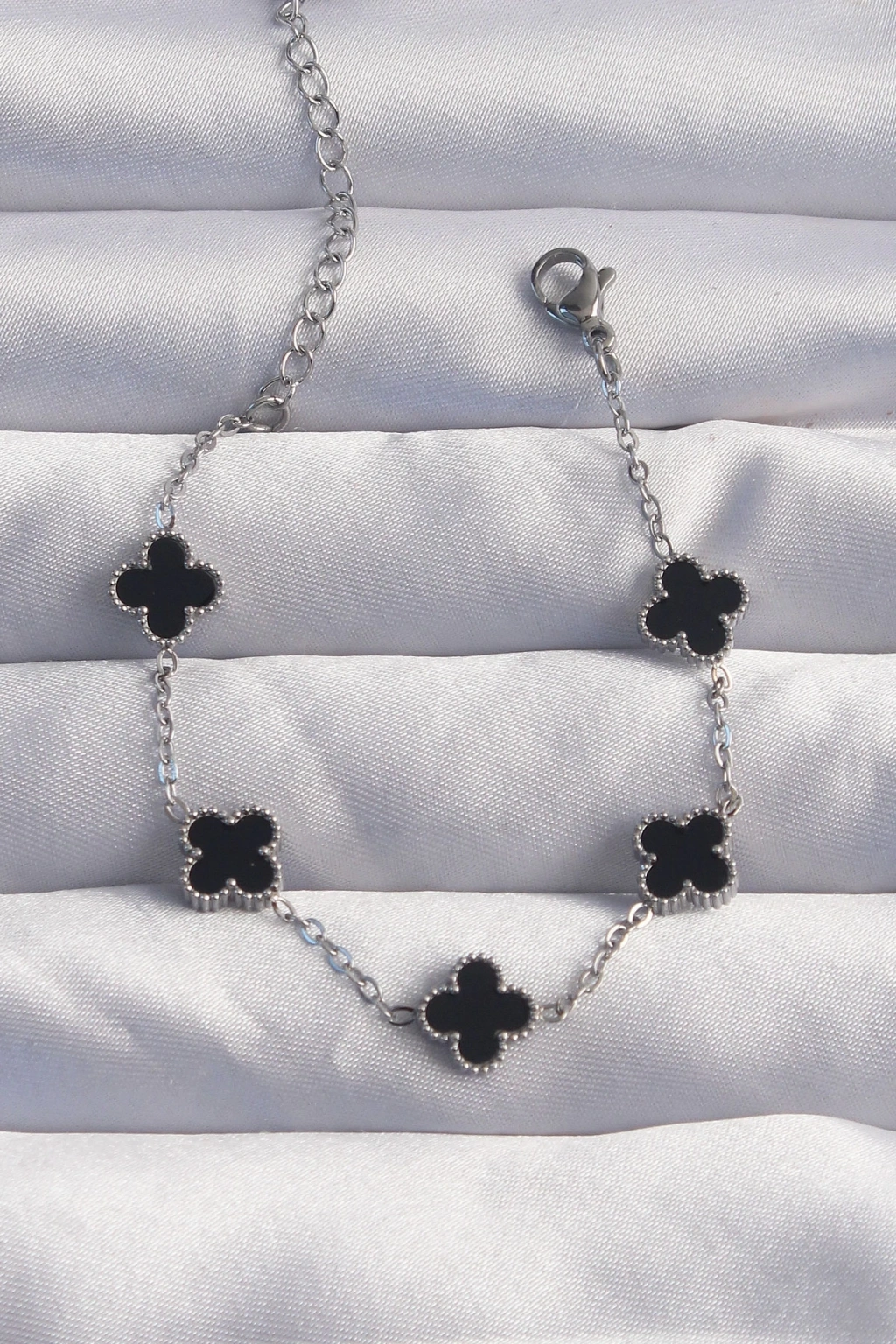 BFS 316L Çelik Baby Boy Gümüş Renk Siyah Mineli Yonca Bileklik