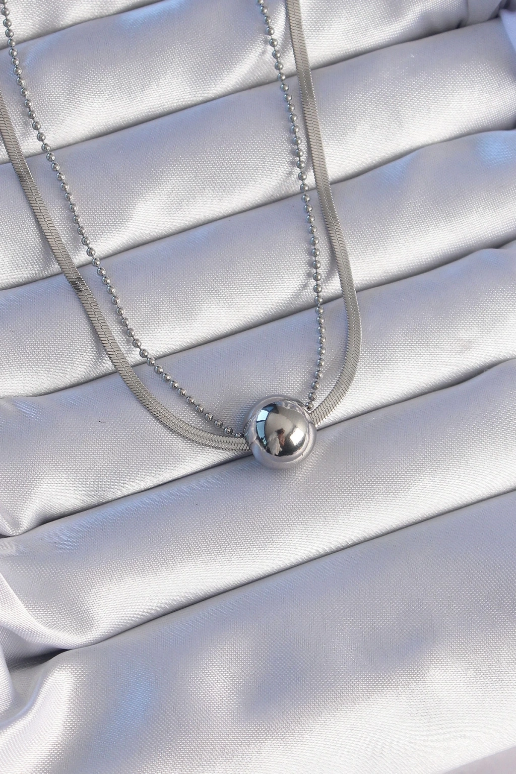 BFS 316L Çelik Çift Zincirli Gümüş Renk Topçuk İtalyan Model Kolye