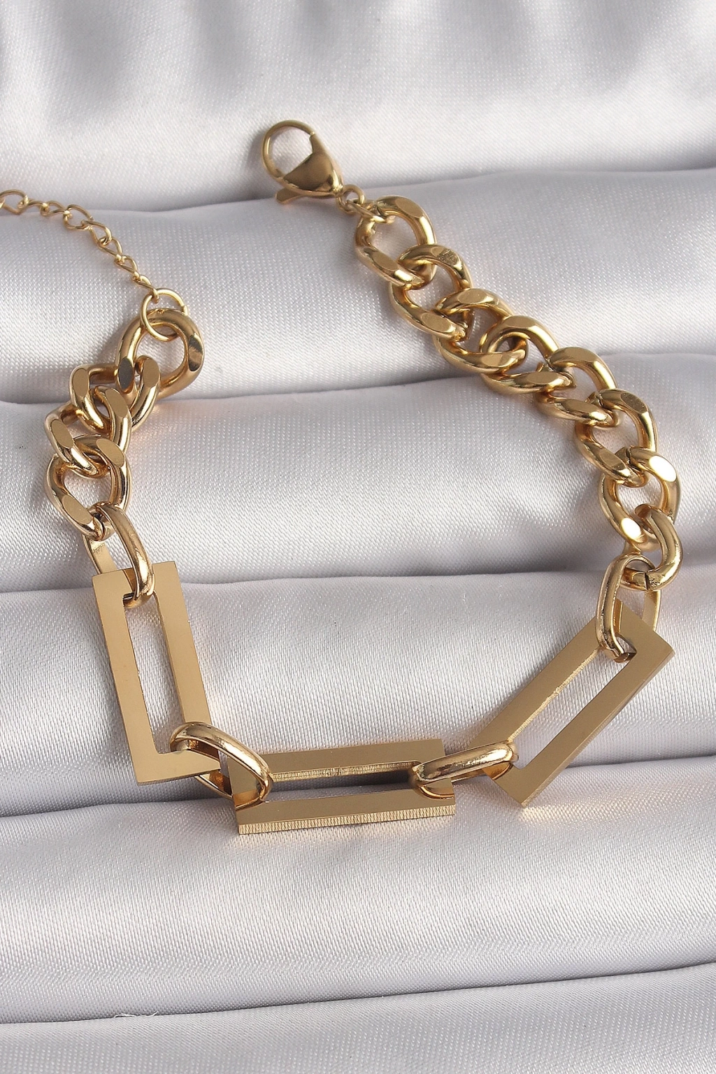 BFS 316L Çelik Gold Renk 2'Li Zincir Model Kadın Bileklik