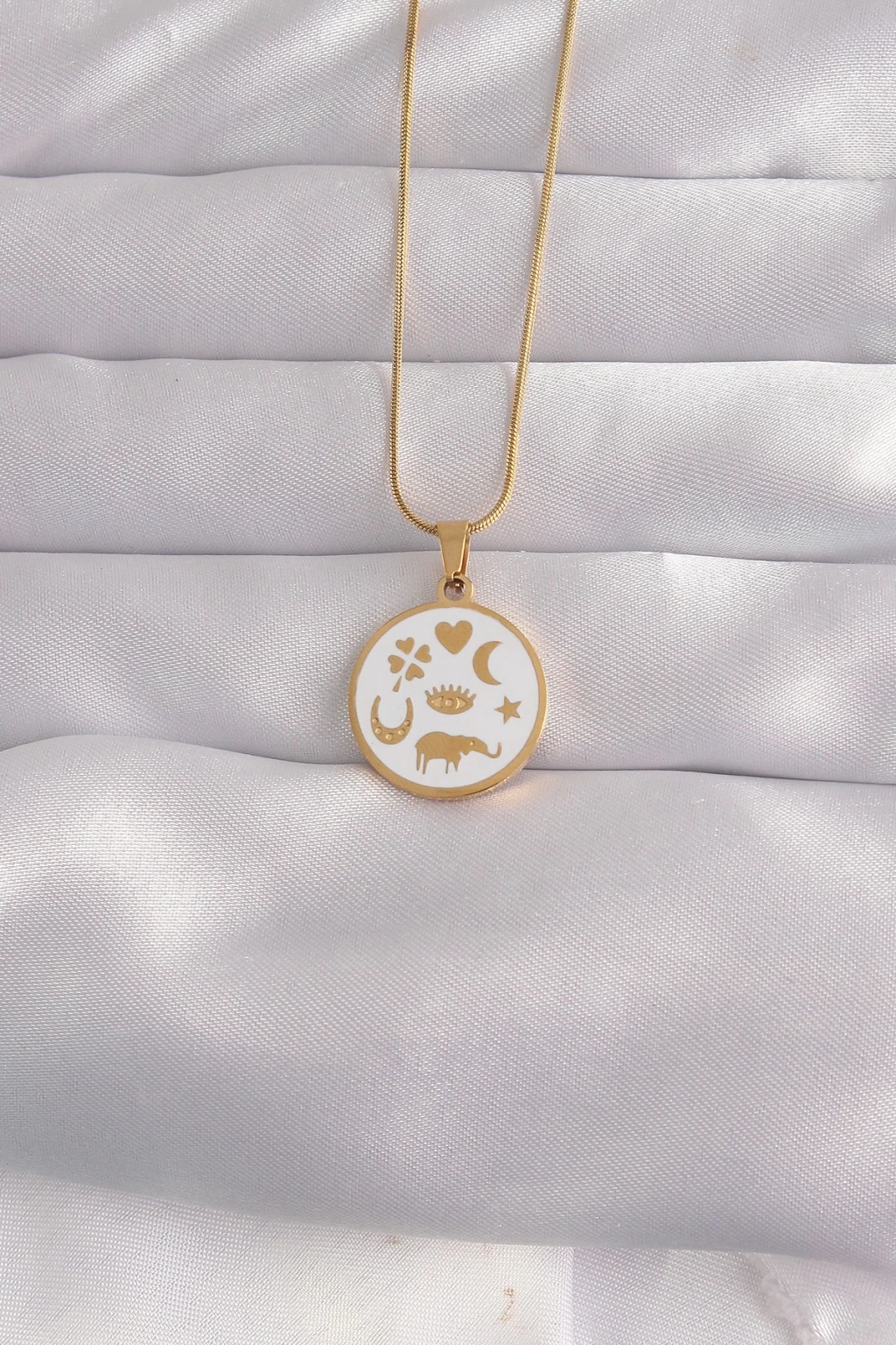 BFS 316L Çelik Gold Renk Beyaz Mineli Karışık Figürlü Tarot Kolye