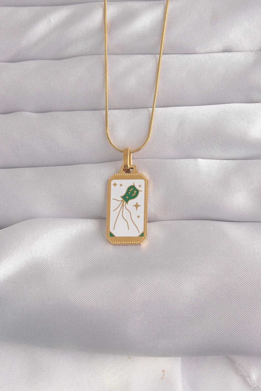 BFS 316L Çelik Gold Renk Beyaz Mineli Tarot Kolye
