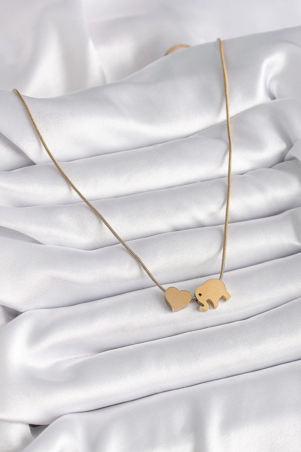 BFS 316L Çelik Gold Renk Fil Kalp Figürlü Kadın Kolye