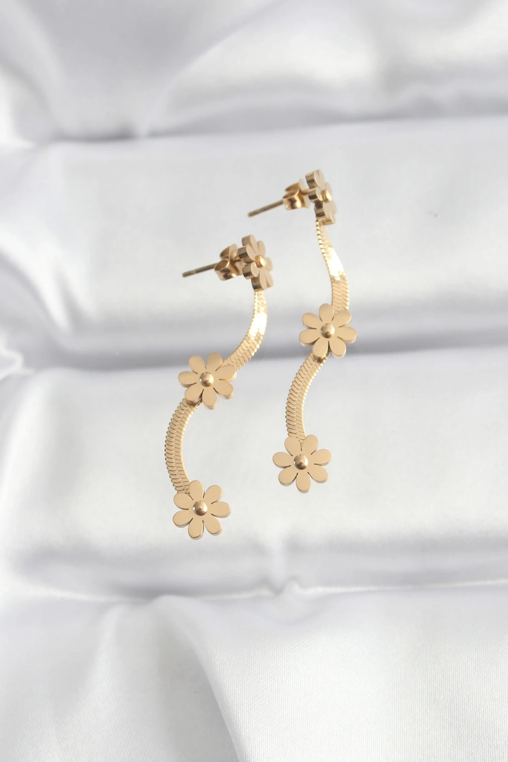 BFS 316L Çelik Gold Renk İtalyan Zincir Papatya Küpe