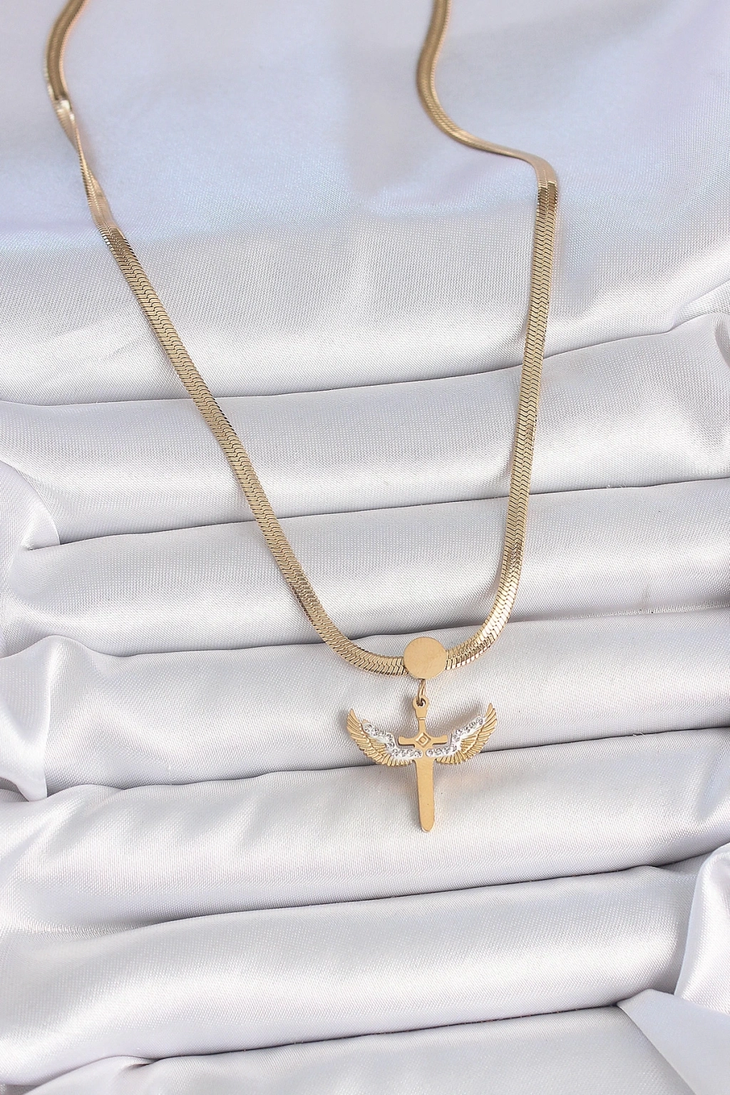 BFS 316L Çelik Gold Renk İtalyan Zincir Zirkon Taş Detaylı Mikail Model Kadın Kolye