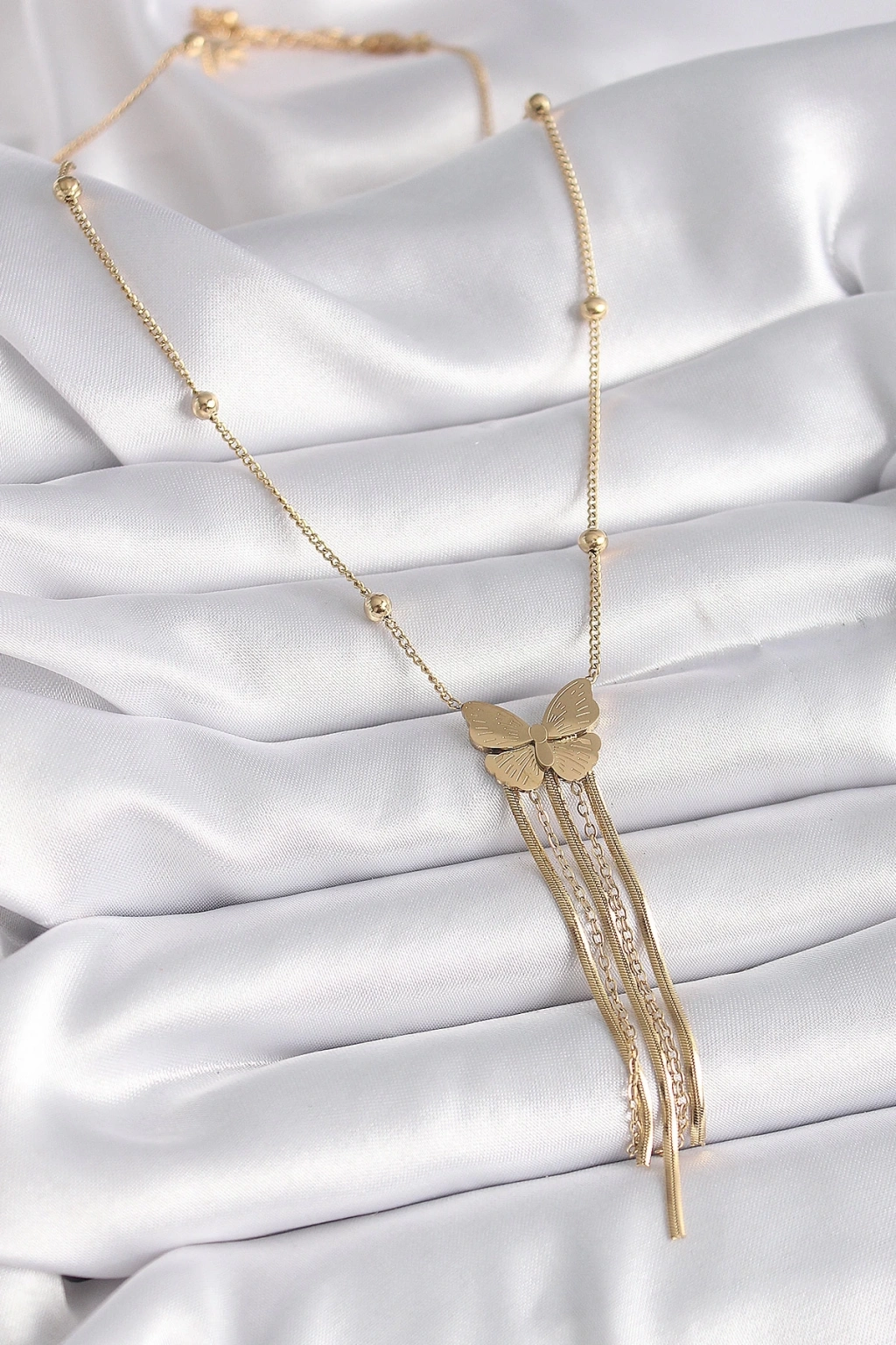 BFS 316L Çelik Gold Renk Kelebek Figür Sallantı İtalyan Zincirli Kadın Kolye