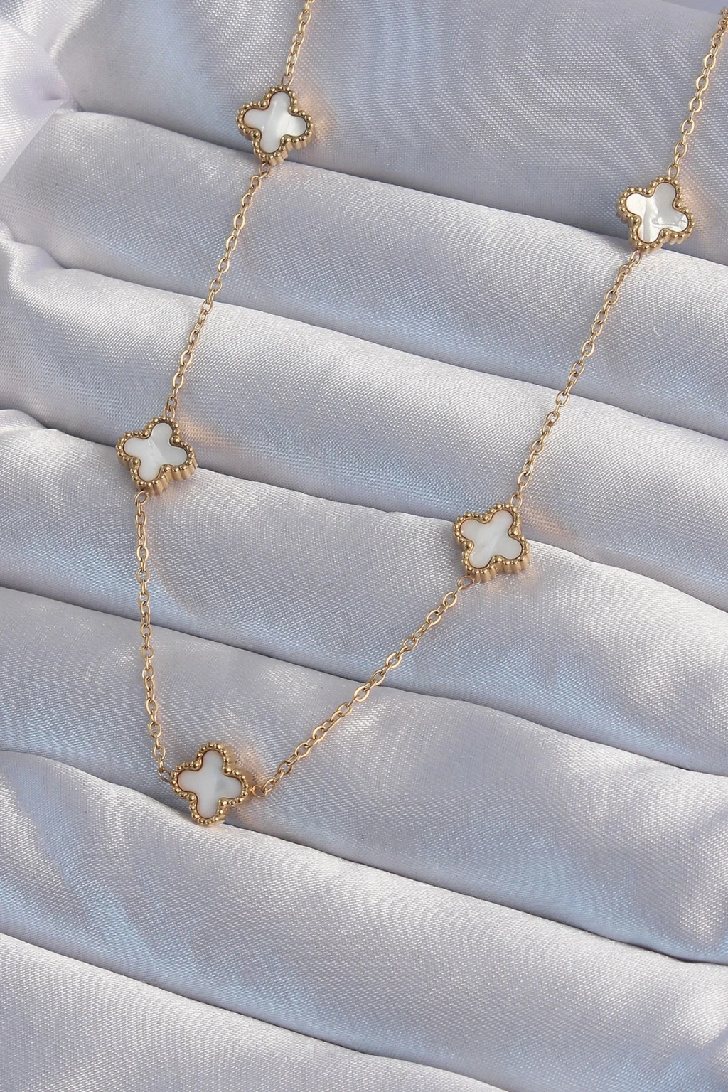 BFS 316L Çelik Gold Renk Minimal Beyaz Sedefli Yonca Kolye