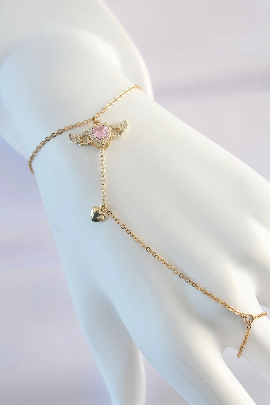 BFS 316L Çelik Gold Renk Pembe Zirkon Taşlı Kanatlı Kalp Model Şahmeran