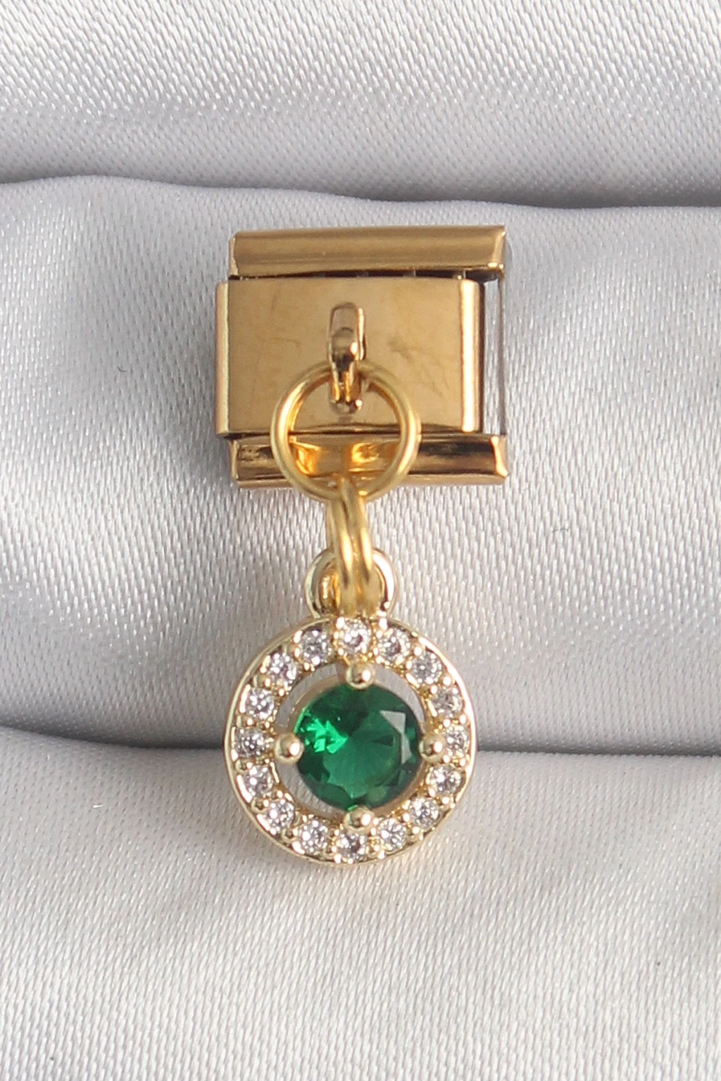 BFS 316L Çelik Gold Renk Sallantı Yeşil Zirkon Taşlı Nomination Charm