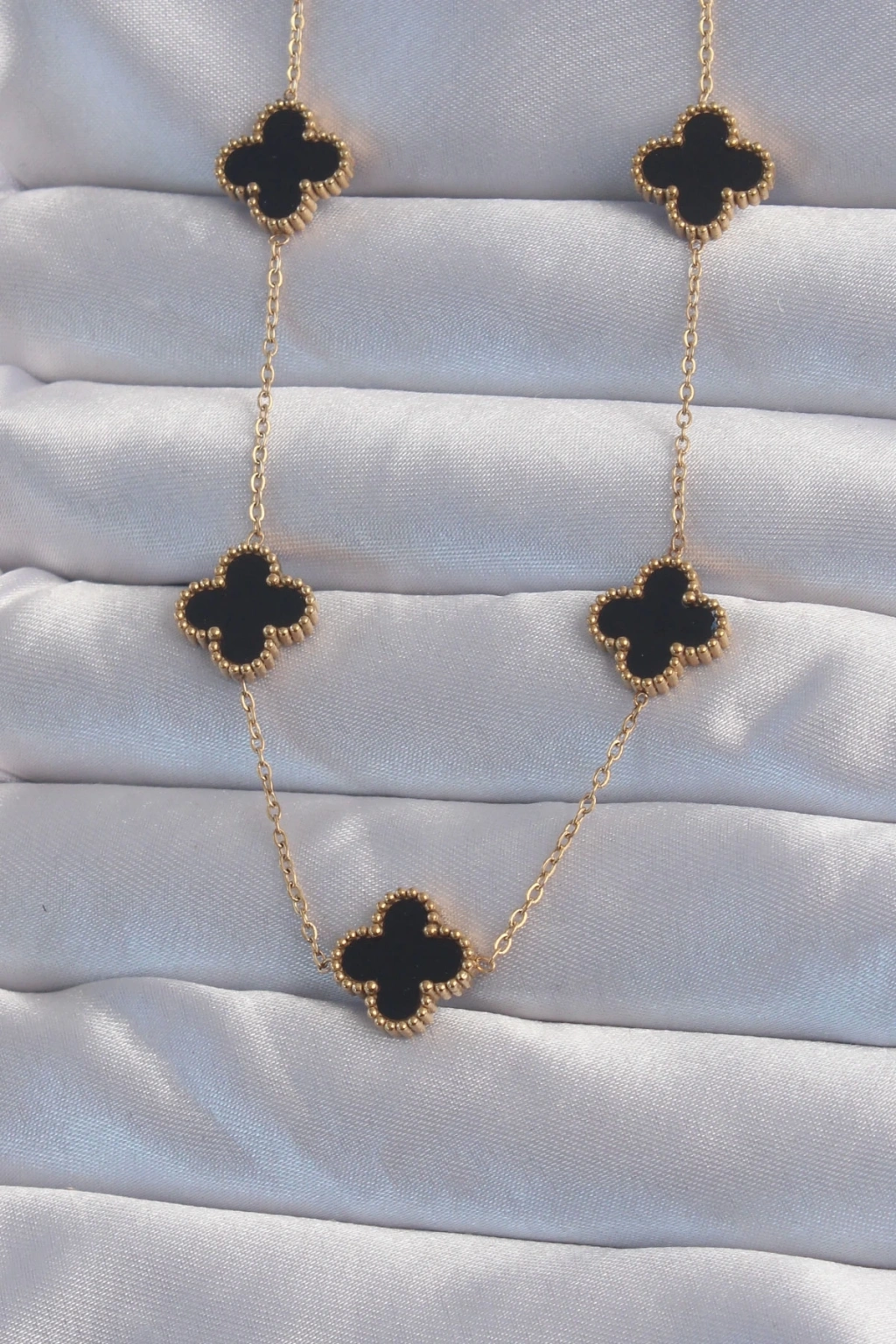 BFS 316L Çelik Gold Renk Siyah Mineli Yonca Kolye