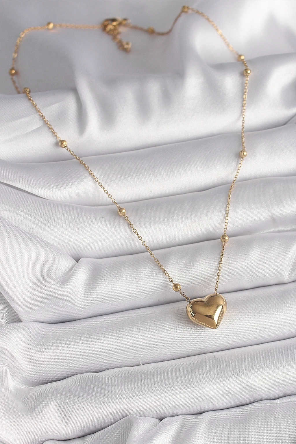BFS 316L Çelik Gold Renk Topçuk Detaylı Zincir Kalp Model Kadın Kolye