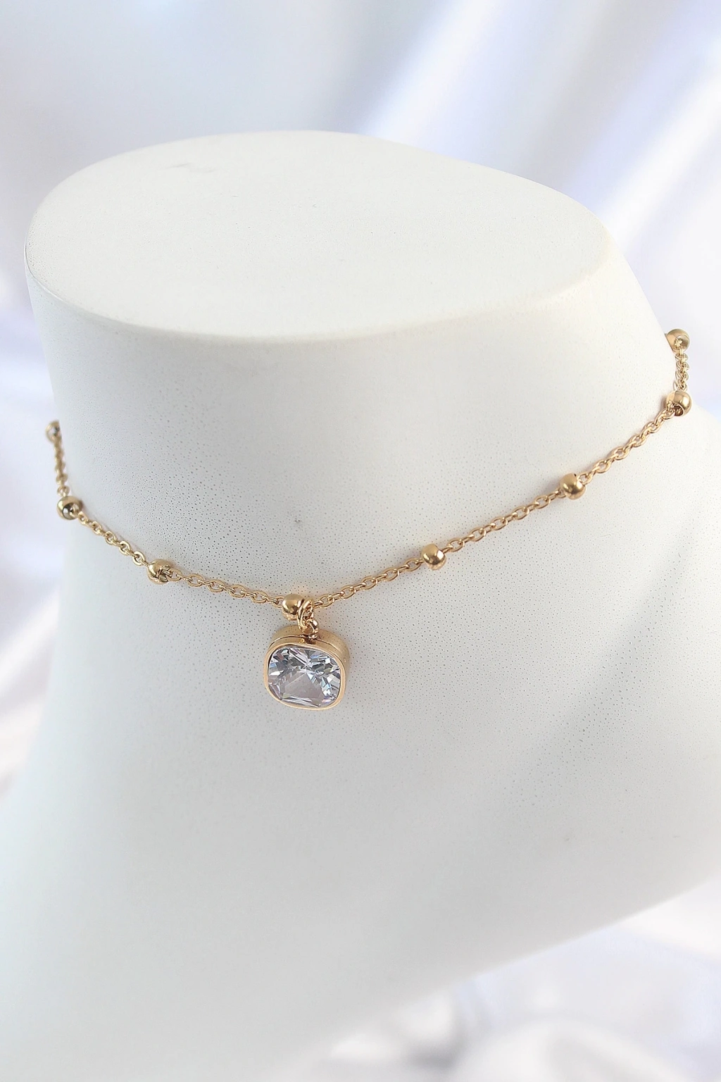 BFS 316L Çelik Gold Renk Topçuk Zincir Model Sallantı Kare Zirkon Taş Model Kadın Halhal