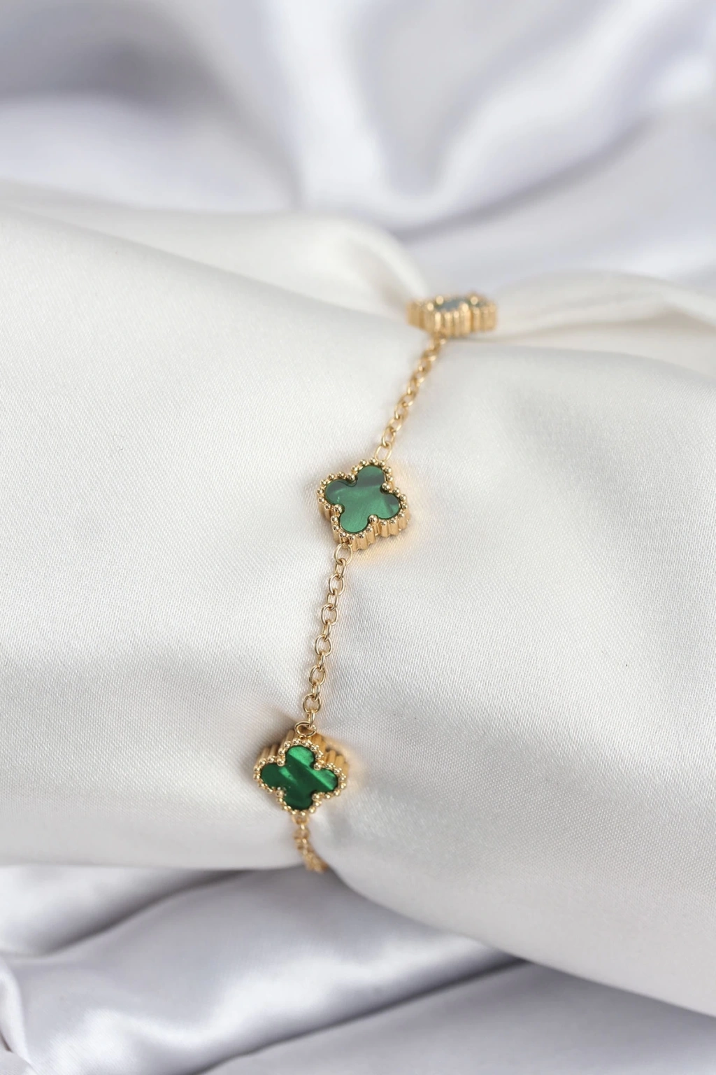 BFS 316L Çelik Gold Renk Yeşil Baby Boy Yonca Kadın Bileklik