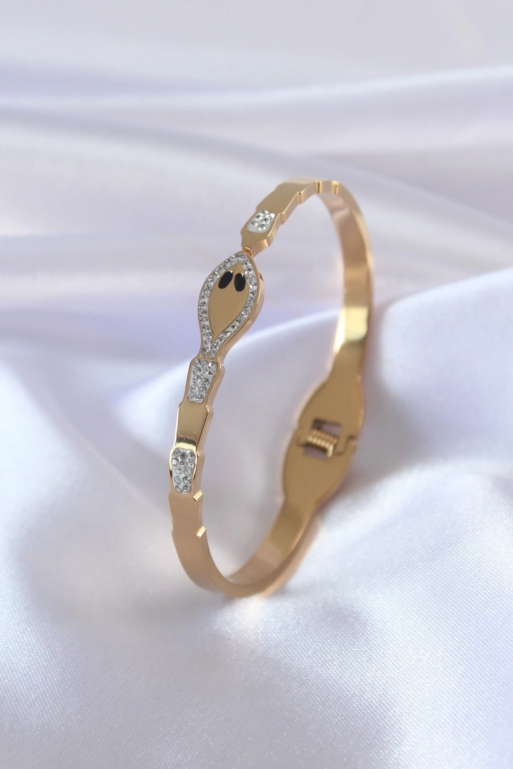BFS 316L Çelik Gold Renk Yılan Model Zirkon Taş Detay Kadın Kelepçe