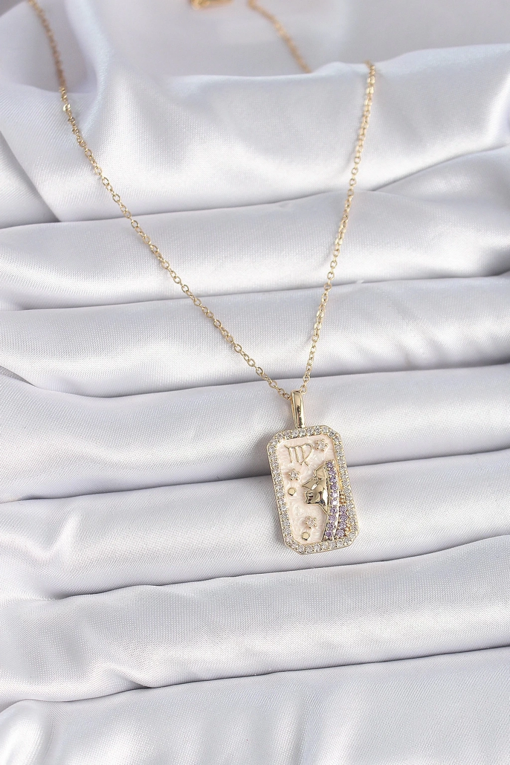 BFS 316L Çelik Gold Renk Zincir Başak Burcu Zirkon Taşlı Kadın Kolye