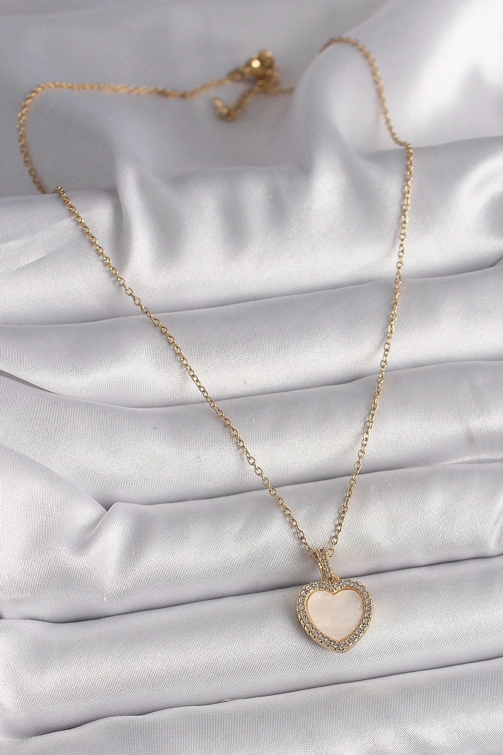 BFS 316L Çelik Gold Renk Zincir Zirkon Taşlı Beyaz Mineli Kalp Model Kadın Kolye