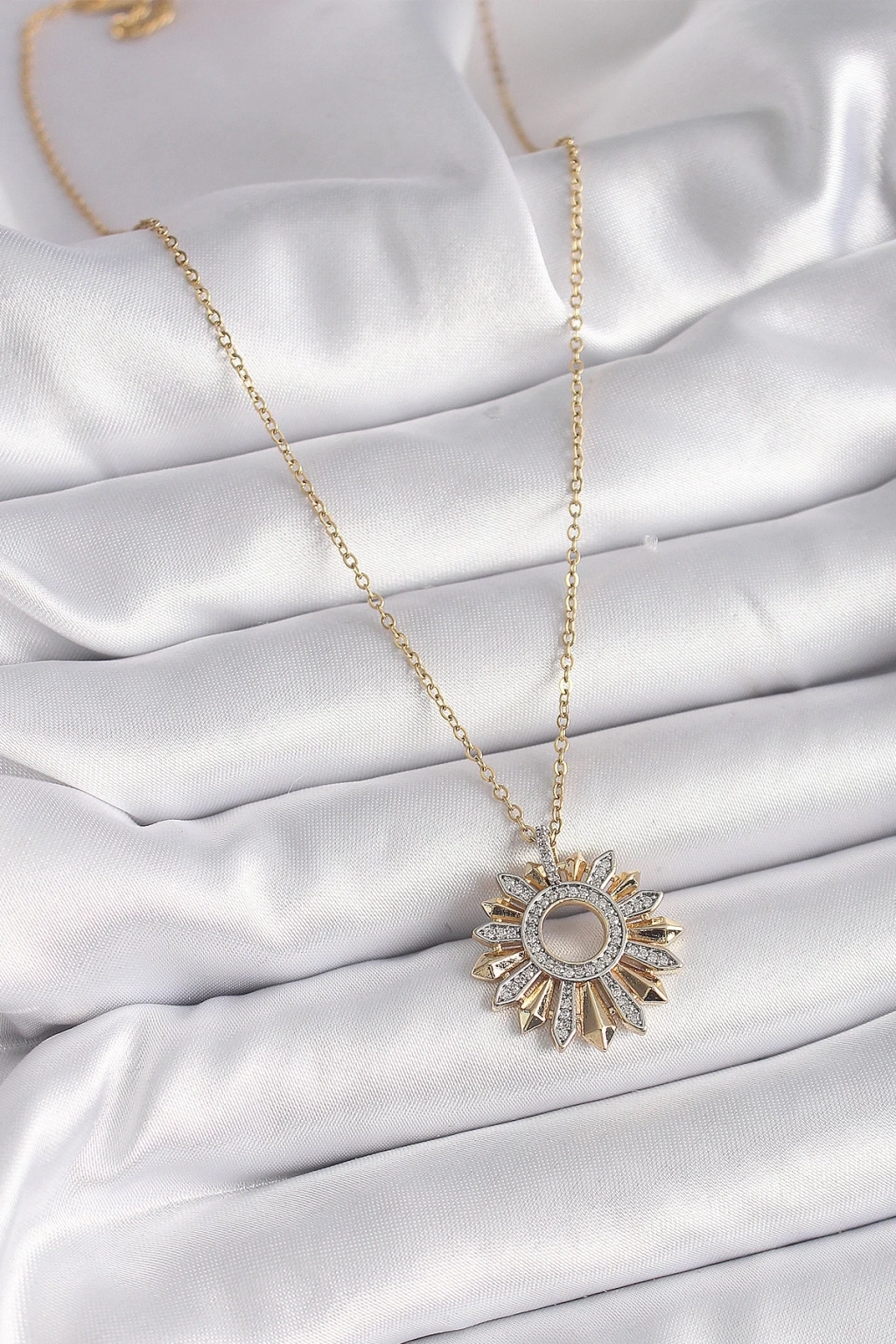 BFS 316L Çelik Gold Renk Zincir Zirkon Taşlı Mix Renk Güneş Model Kadın Kolye