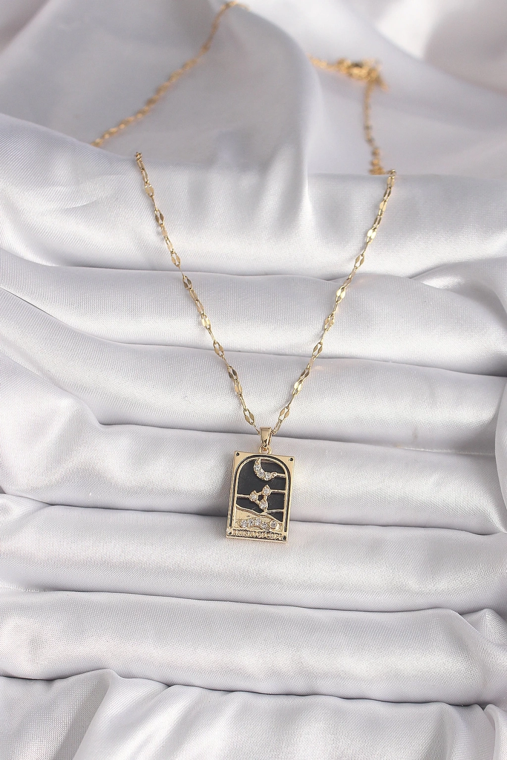 BFS 316L Çelik Gold Renk Zirkon Taşlı Ay Figürlü Tarot Model Kadın Kolye